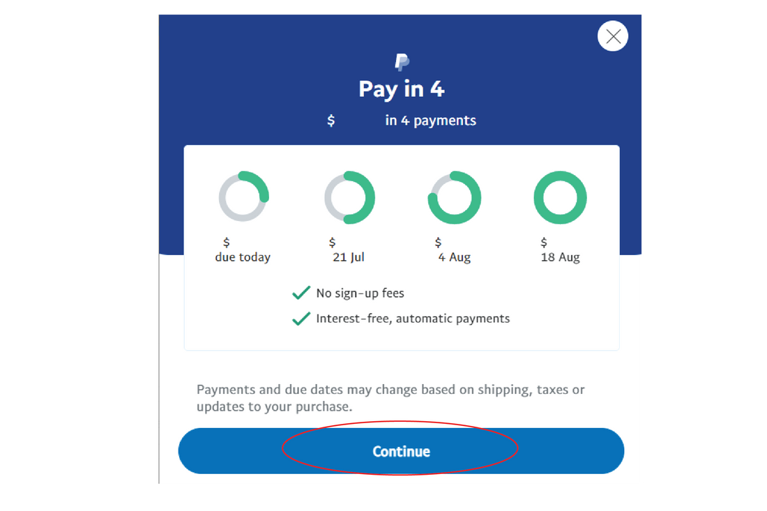 If you have PayPal, the good news is that you don't need to sign up for a new service, you can buy now and pay with four instalments with your PayPal account.